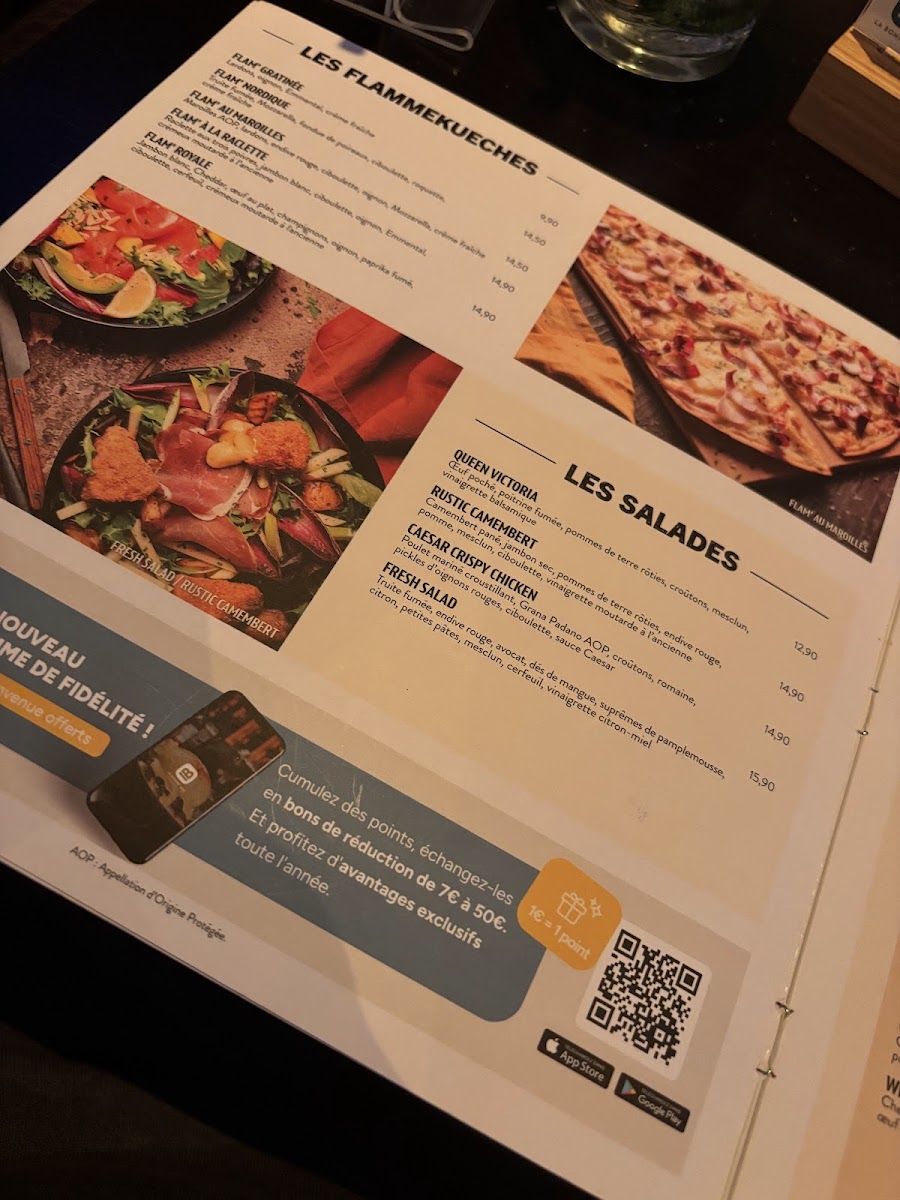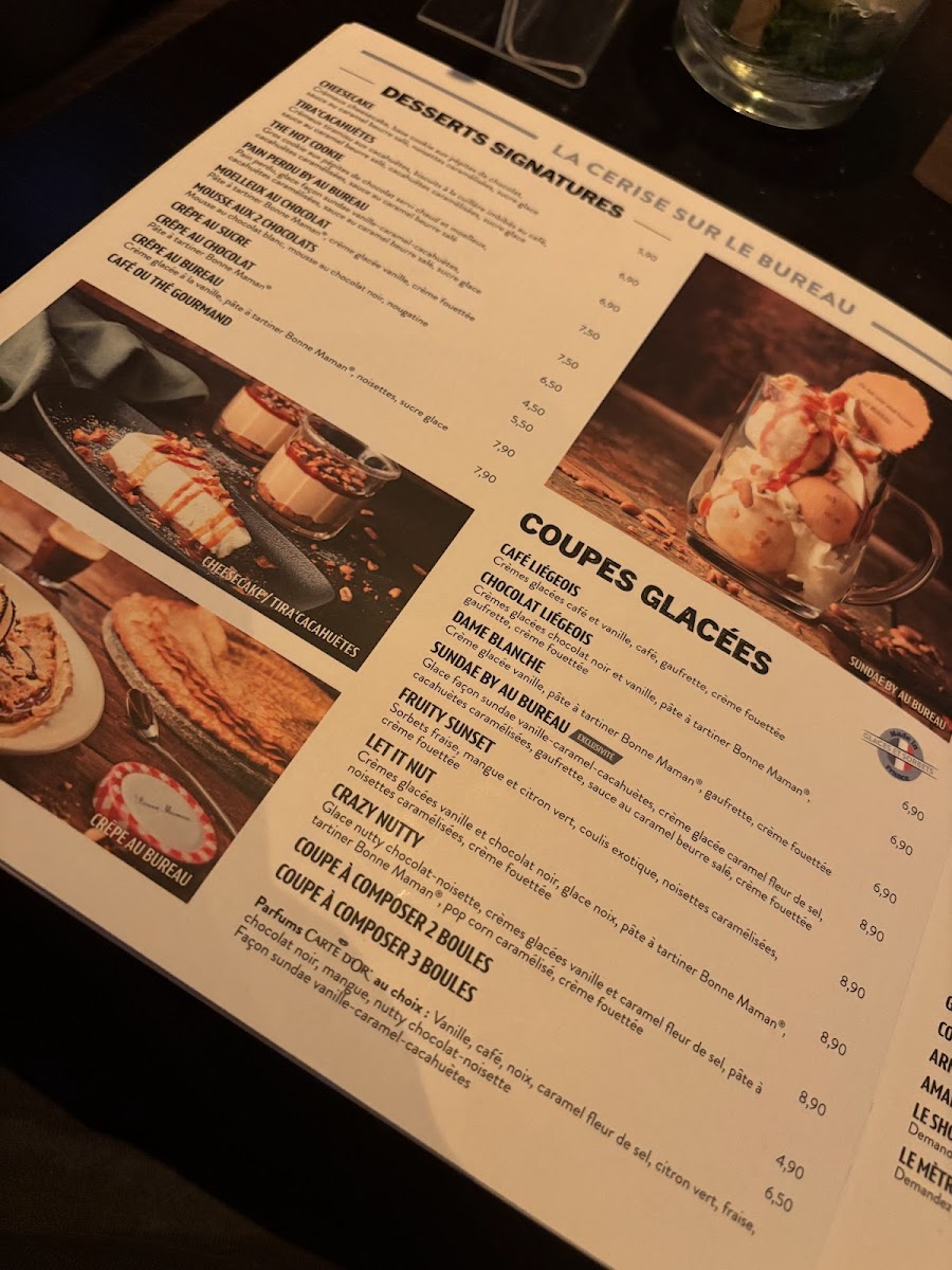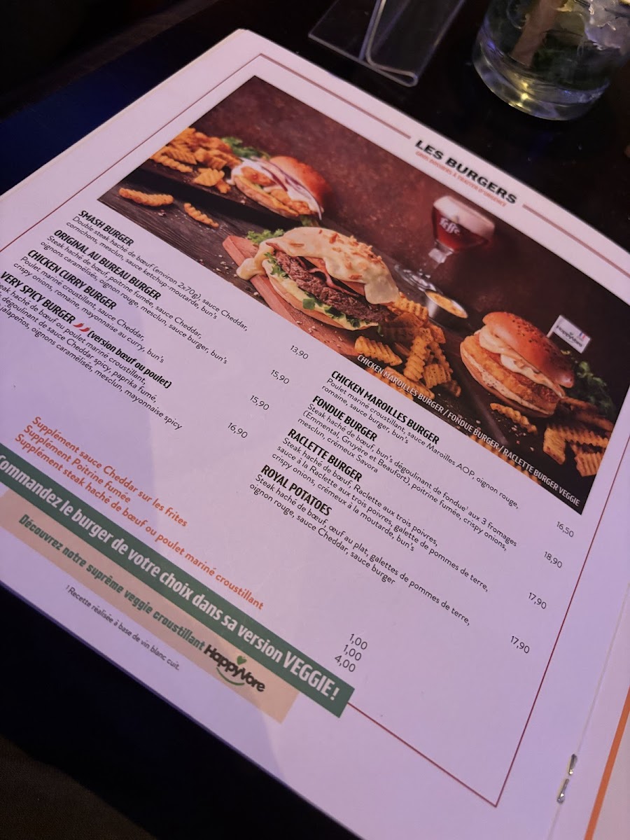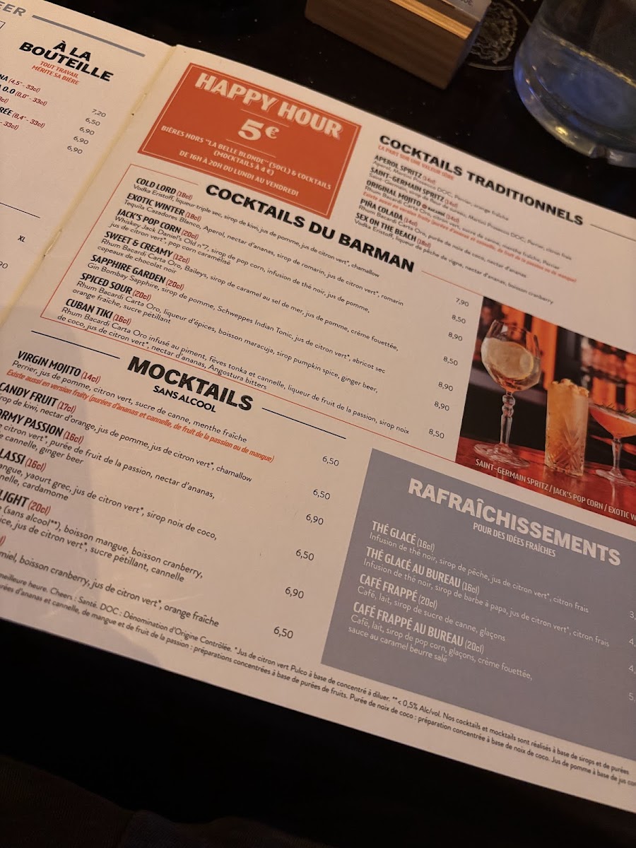 Signature dishes like the Poulet au Maroilles and Camembert rôti evoke warm, rustic flavors with expertly paired sides. Complementing these dishes, the drink menu boasts comforting hot beverages, from classic Irish Coffee to the decadent Sweet & Creamy Gourmand, perfect for a cozy evening. The attentive staff and lively atmosphere make every visit memorable, blending casual charm with refined taste.